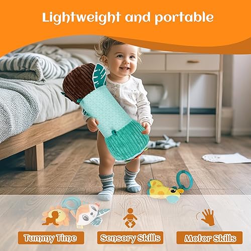REWARDING GIFT: Newborn tummy time toys for shower gifts, newborn infants’ birthday, Christmas gift toys, must have baby items for 3 4 6 12 month boys girls is easy to carry and lightweight, it comes in handy for car rides and other outings
