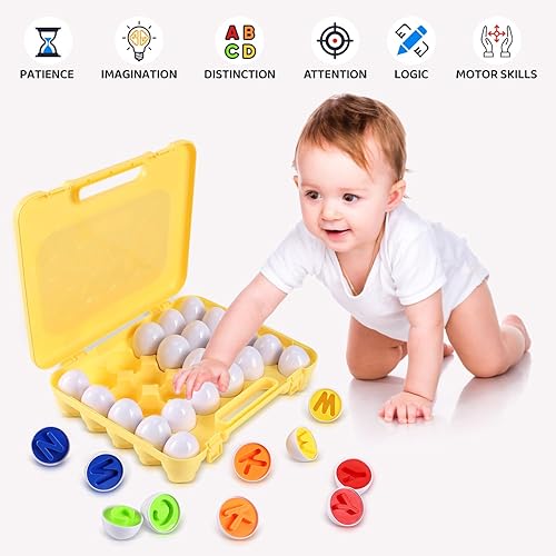 【FUNNY TODDLER SORTING GAMES】: 26PCS ABC Alphabet Easter Eggs get together to exercise children's hand-eye coordination and recognition skills, help preschoolers count, sort and match. Enjoying these eggs and opening them all Spell all kinds of words & then try & match them back together.