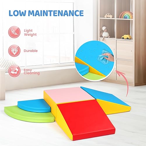 [Plenty of Climbing Space] This foam climbing blocks cleverly combines colorful triangles, sectors, and squares into three functions: steps, ramps, and platform, providing children with a wealth of climbing and playing fun. In addition, due to the light-weight of the product, children can use their imagination to move the blocks at will to form new combinations, which adds a lot of fun to the product.