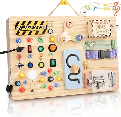[Montessori Board with Lights & Music] This Montessori busy board combines sensory fun and learning in one toy. Toddlers can flip switches, press buttons, and activate LED lights or a hand-cranked music box, encouraging sensory exploration, focus, and curiosity. A great Montessori toy for hands-on learning at home or in preschool.