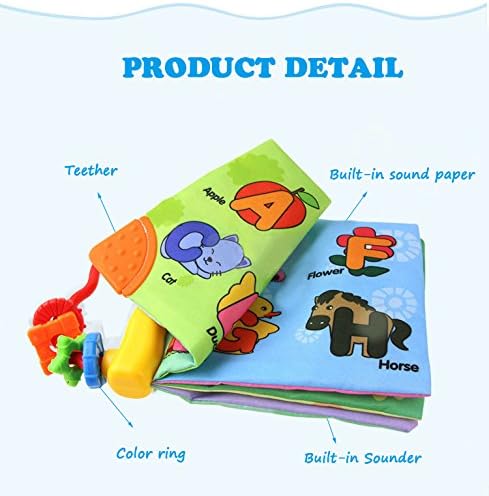 1.MULTIFUNCTION:Our cloth book with teether,color ring,built-in sounder and sound paper.