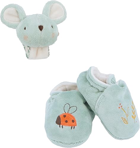 A gentle promotion of Kaloo: this premium set consists of a bracelet and sound shoes made of delicate velvet that will accompany your baby in their first steps to discovering sounds and movement.