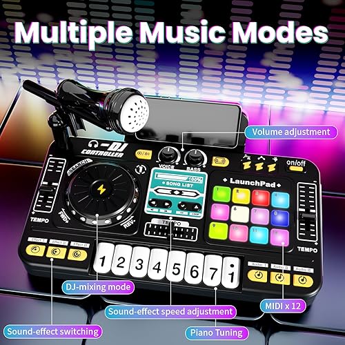 【Build, Mix & Perform Like a DJ】This DJ set for beginners lets kids create music with 12 MIDI effects, remix rhythms, and use the built-in recording and programming modes. Whether playing solo or hosting a show, it encourages musical exploration and skill-building through hands-on play