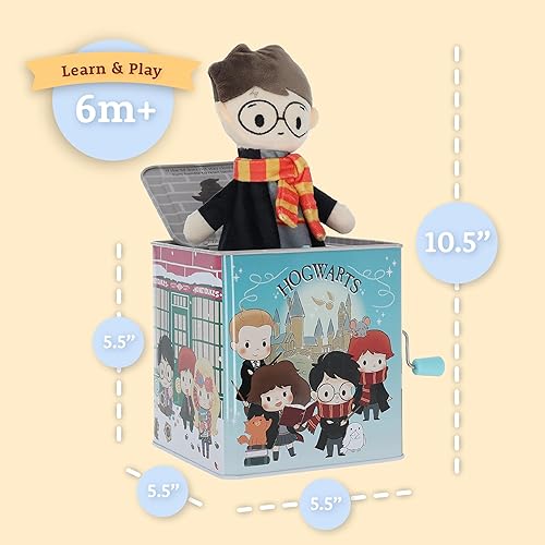 SOFT PLUSH HARRY POTTER: The Jack-in-the-Box features a soft plush Harry Potter character, perfect for cuddling and imaginative play. This charming toy brings the beloved wizarding world to life for your little one.