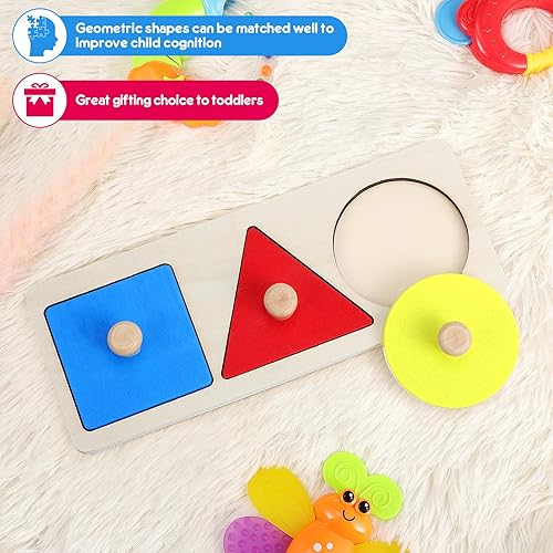 Montessori Shape Puzzle Equipped with baby puzzle with knobs of different colors and shapes, your baby needs to put different shapes into the corresponding grid. The bright colors and large size make it easy for baby to grasp