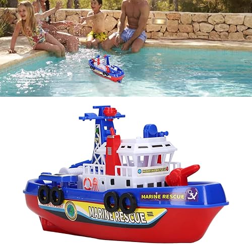 Lifelike Features: The marine boat toy has simulated fire alarm lighting effects and siren sounds as well as cool music. Put the boat into the water and it will automatically spray water.
