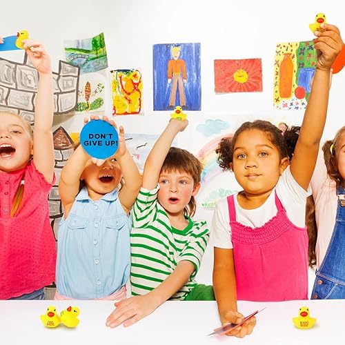 Inspirational Design: our assorted rubber ducks are printed with inspirational quotes such as [Focus Listen to Breathe], [Don't give up], and more, different inspirational quotes help to relieve different stress situations; When you feel stressed in your life, pinching a duckling can cheer you up and inspire you