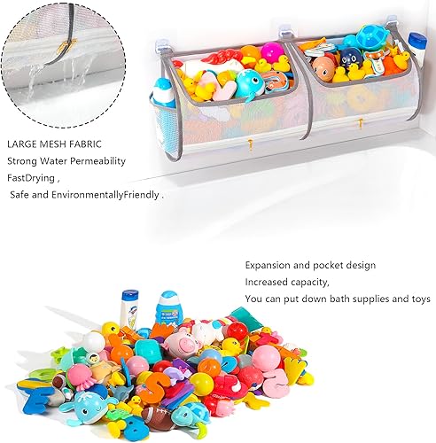 LARGE CAPACITY- With the increase of the capacity of the bath toy storage room, it can accommodate all baby bath toys and keep the bathroom clean and tidy