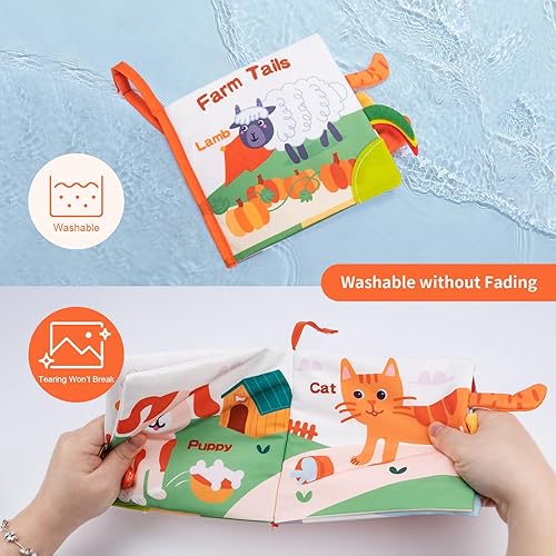 Safe & Baby-Friendly,Baby Teething Toys:Crafted with love and safety in mind, this baby cloth book is made from BPA-free materials—gentle on your baby's gums and delicate skin. The chewable, teething-friendly parts provide soothing relief, making it a great choice for baby teething toys and everyday infant play. Plus, it's machine washable for easy cleaning and long-lasting use.