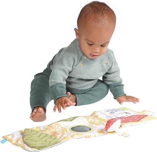 TUMMY TIME BABY TOY: Baby's first book features colorful tactile fabrics inspired by nostalgic natural scenery with visually inspiring graphics and simple woodsy-themed shapes and a baby-safe mirror, where little one will explore self-discovery and experience new tactile sensations. Pat mat also features a top loop for easy attachment with links to become a baby travel toy for strollers or car seats so baby can stay busy.
