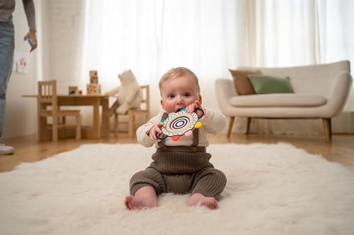 Soft plastic nubs for touching, teething, and sensory exploration.