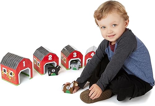 Match-and-stack set of 6 stacking barns and 6 wooden animals