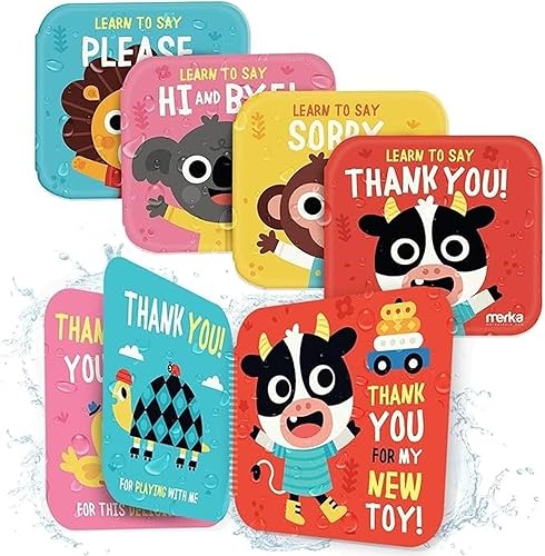 Early Skill Development: Introduce essential social skills like "thank you" and "please" using Merka's vibrant young toddler bath books. These books foster early verbal communication and enhance motor skills, making them an ideal baby bath book for toddlers