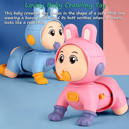 Lovely Rabbit Crawling Toy: This baby crawling toy comes in the shape of a cute little one wearing a bunny outfit, and its butt writhes when it crawls, looks like a real child.