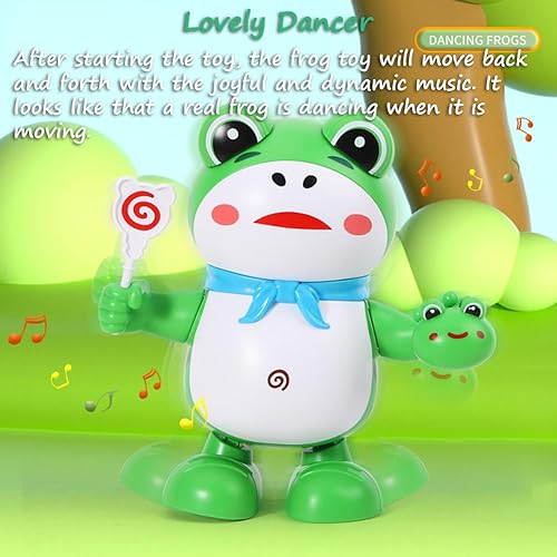 Lovely Dancer: After starting the toy, the frog toy will move back and forth with the joyful and dynamic music. It looks like that a real frog is dancing when it is moving.