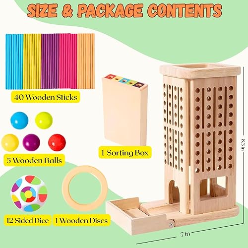 3-in-1 Montessori Balance Toy - Includes a wooden leaning tower, colorful sticks, rings, and balls for stacking, sorting, balancing, and counting activities that inspire creativity and early STEM skills.