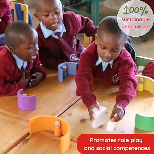 CREATIVE PLAY: This Montessori-inspired set encourages imaginative play and creativity, including versatile wooden rainbow stackers and peg dolls for storytelling and role-play.