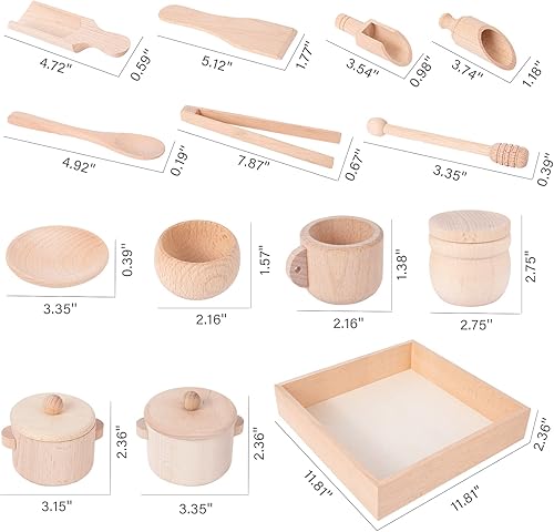 【Sensory Toys for Toddlers】 Wooden sensory bin tools including tongs, containers and other small objects simulate fine motor skills and sensory play. Smaller wooden toys than the living utensils, ideal for toddlers to grasp and move around,helping to develop real life skills.