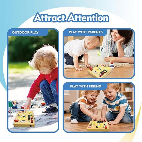 【Montessori LED Busy Board】This busy board is specially designed for toddlers who love switches and LED lights. There are more than 10 different switch and 22 colorful LED set up on this busy board, each triggering different colors and patterns for endless exploration. The brightness of each LED is adjusted to be just right for the baby, not too bright, t oo dazzling or too dark to see clearly. A convenient master switch allows one-click power-off to save energy. It's a Great Montessori-style Toy!