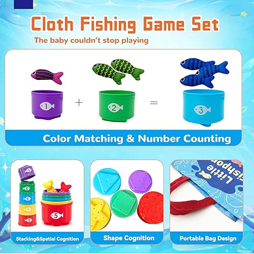 Ideal Gifts for 1 Year Old: This upgraded fishing game toy for kids with stacking cups has multiple ways to play and match! It's a great early learning and sensory toy for babies 6-12-18 months, also ideal baby gift for boys girls such as Children's Day gifts, Birthday gifts, Christmas gifts, sock fillers, Thanksgiving gifts and more.