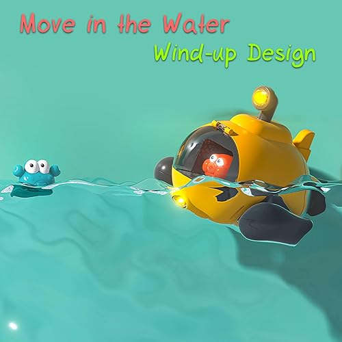 Move in the Water: This bathtub submarine toy features a wind-up design that allows it to move on the surface of the water without the need for batteries. To wind it up, what we need to do is to just twist the knob at the bottom.