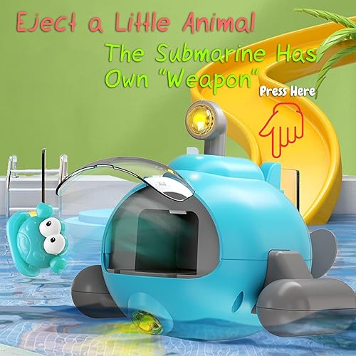 3 in 1 Cool Submarine Water Toy: This submarine tub toy is multi-functional, and it has 3 main very interesting functions: Moving in the water; Ejecting little animals; Glowing automatically in water.