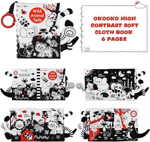 EARLY EDUCATIONAL TOY: Your baby can learn different animals through OKOOKO tails book, develop basic discrimination ability of patterns and animals. Soft interactive book pages introduce animals through bold patterns and fun interactive features