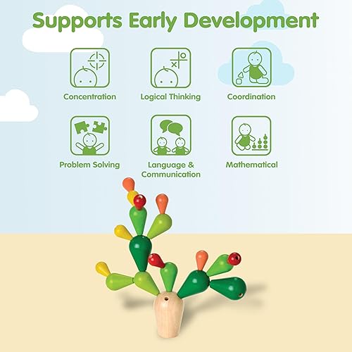 Each player takes turns adding one of the pieces to the cactus and try not to let it fall over.