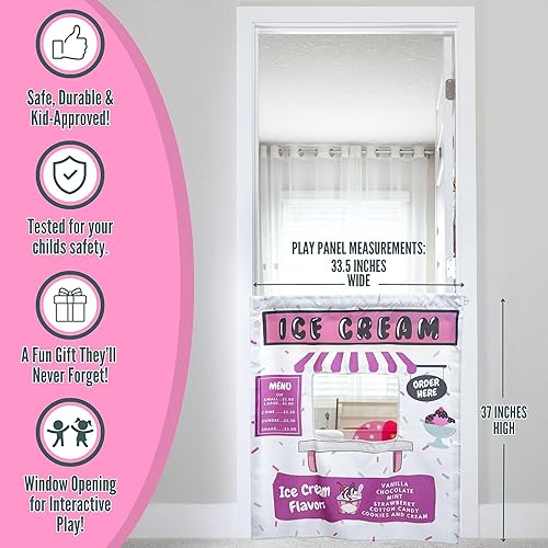 Perfect Birthday or Holiday Gift - Ideal for indoor playrooms, small spaces, or early learning environments. Includes: 1 Ice Cream Shop Play Panel + 1 Adjustable Doorway Pole + 1 Velcro Hanging Strap