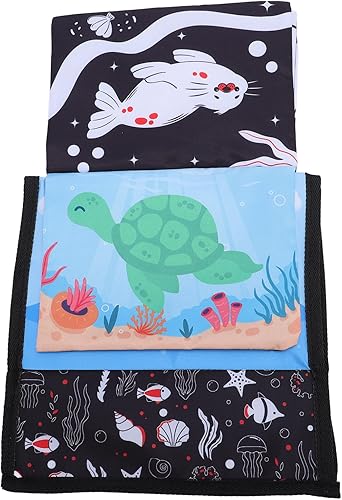 [ENGAGING OCEAN ANIMAL DESIGNS] This delightful cloth book captivates your baby's curiosity with vibrant high contrast ocean animal patterns that stimulate visual development. The eye catching designs promote early learning through interactive play while encouraging cognitive growth and color recognition in infants during their crucial developmental stages.