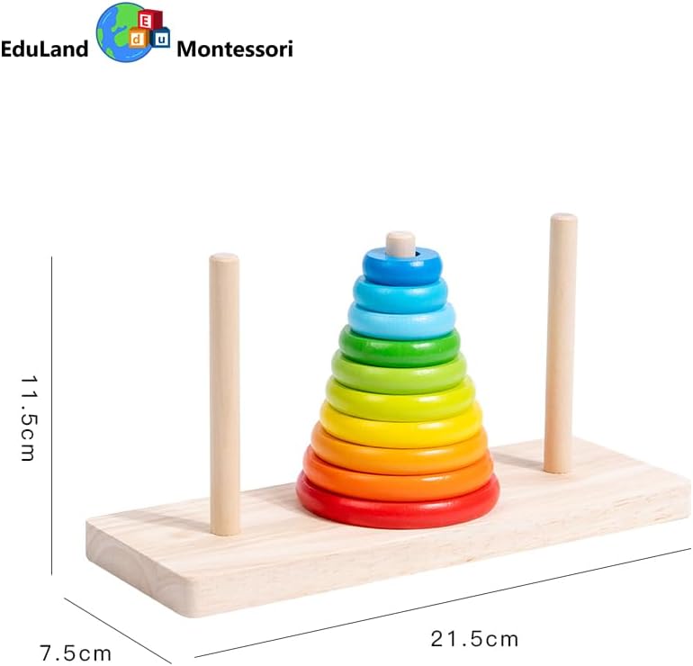 Classic Montessori Puzzle: Features a 10-ring Tower of Hanoi puzzle designed to enhance logical reasoning, problem-solving, and sequencing skills in children aged 3 and up.