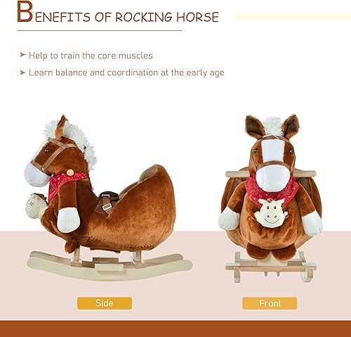 Security First: the handles, back, and seat belt of this rocking horse make sure that your kids have some secure fun! The plush fabric on this horse covers the hard frame, so your sweetie can pretend in utmost comfort.