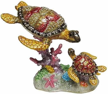 The Sea Turtle & Baby Jeweled Trinket Box has been cast in pewter, and enameled