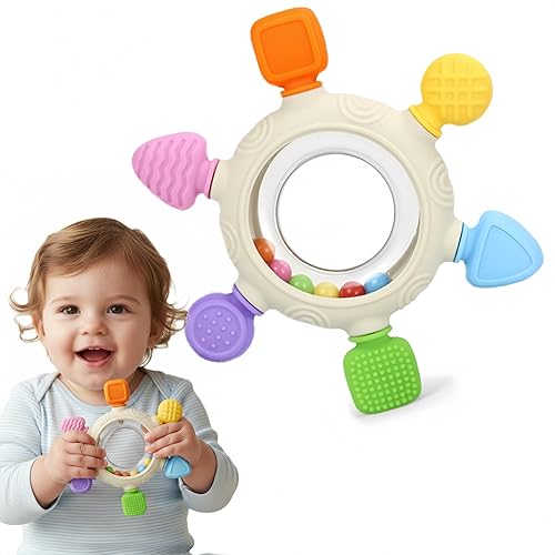 Multi-Sensory Stimulation – Features 6 textured surfaces, colorful rattle beads, and ergonomic shapes to engage baby’s senses of touch, sight, and hearing.
