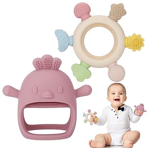 Develop Grasping Ability: Our baby teething toys feature innovative silicone teething mitten and baby chew toy designed to enhance your little one's grasping skills and fine motor development while providing soothing relief during teething, a must have teether toy for 3 6 9 12 18 months babies.
