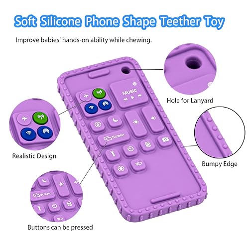 ★ Easy to Clean - The food-grade silicone material allows this baby teether phone to withstand high temperatures up to 250℃, making it easy to clean. You can boil it, steam it, or even put it in the dishwasher. We recommend you wash this baby phone teething toy before first use.