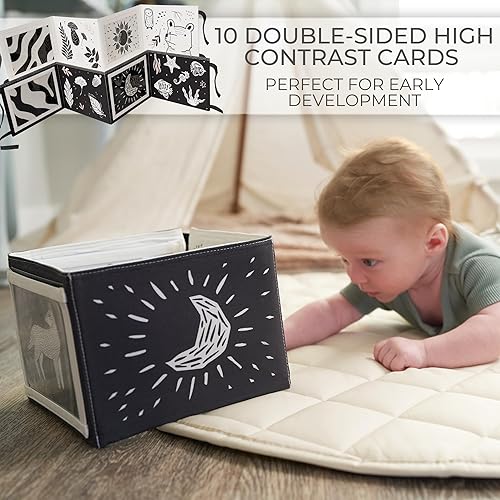 Precious For Tummy Time Practice: Stage 1 of the 7.5x5.9” activity book engages & entertains your baby at 0+ month! The baby toys’ high contrast colors stimulate & aid visual development, while the safe mirror helps them to look at themselves & track movements