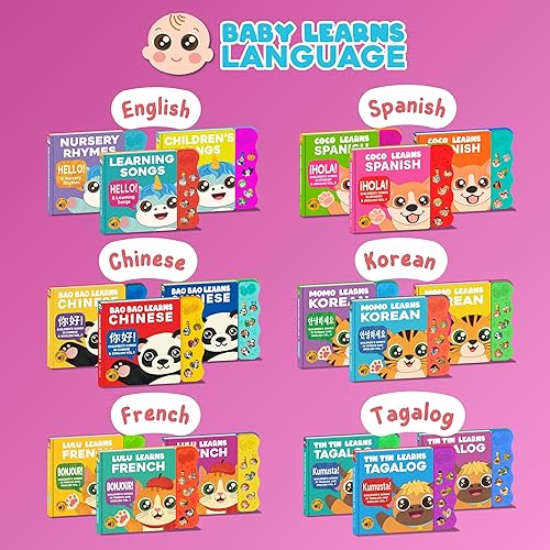 TIN TIN LEARNS TAGALOG books are the perfect Tagalog books for babies, kids, toddlers and children. Our Filipino books for kids in Tagalog are beautiful, durable and safe. The perfect bilingual Tagalog books for kids with music. These Tagalog board books for kids are a great gift for newborn infants, babies, one year olds, two year olds, three year olds and toddlers of all ages. Non-tearing board book pages. Batteries included. Easy volume controls and mute options.