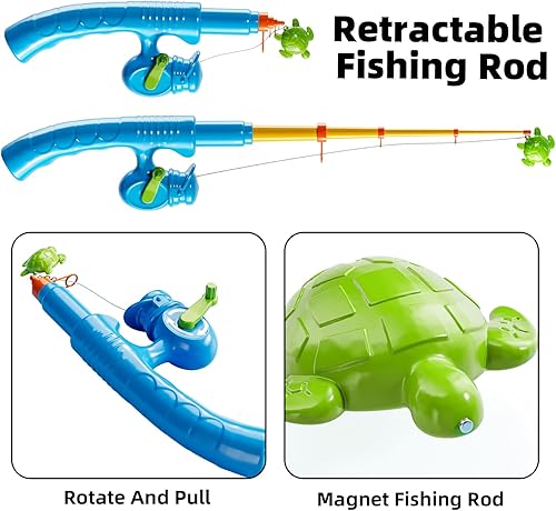 Interesting Fishing Game Toys for Kids: Kids water toy includes 51 cue magnetic fish, 2 magnetic fishing poles (8.6 in) and 2 fishing nets (6.3*2.9 in). Baby and toddler toys are suitable for Kids over 3 years old.