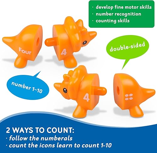 [Develop Important Basic Skills] - Kids learn number, colors, develop counting skills, sorting skills, hand-eye coordination, and fine motor skills through dinosaur matching games. Also suitable as occupational therapy toys, preschool learning toys.
