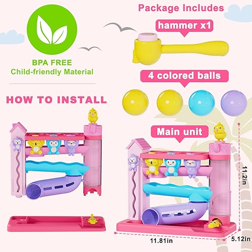 Interactive Musical Toys – Pound, drop, and watch the colorful balls roll down the track! This interactive toddler toy improves color recognition, cause-and-effect learning, and cognitive skills. The rolling ball track promotes hand-eye coordination and fine motor development, setting a strong foundation for early learning.It is perfect for baby 6-12 month, 12-18 month,one year old boy & girl.