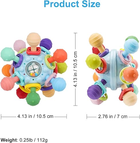 Multi-Sensory Baby Toy: This baby sensory toy uses 12 kinds of bright colors and textured silicone balls to stimulate baby’s senses. The rattle ring, twisting clicking ball and rotating ball also allow baby to have more sensory fun