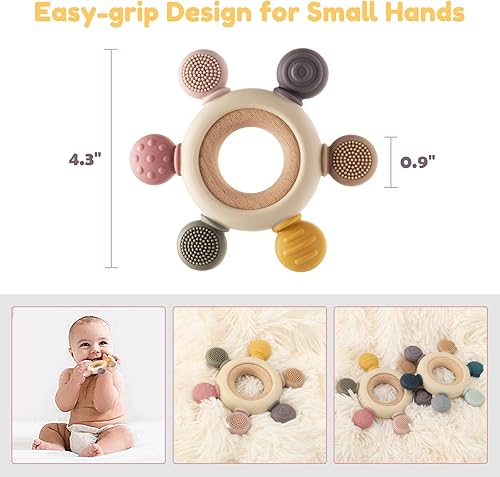 Baby Toy Made for Little Hands: The wooden ring is easy for baby to grasp, this baby teether toy can also keep your baby busy and happy for hours, let new moms can have a rest, a must have teether for 3 6 9 12 18 months babies