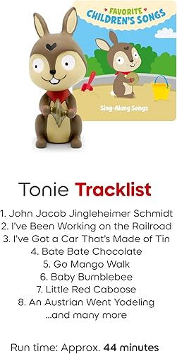 Introducing the latest addition to our tonies Originals Favorite Children Songs collection! It features 17 great sing-along songs that the whole family can enjoy. Be sure to check out some of our favorites including "I've Got A Car That's Made of Tin", "Bate Bate Chocolate" and the lively medley "When the Saints Go Marching In/This Train".