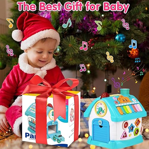8-In-1 Multifunctional House Toy - The Montessori toy for 1 year old could captivate and entertain kids for hours, encourage their curiosity and skill enhancement, explore a realm of enjoyment and education. Every side features a unique toy for kids to have fun with: Music zone with piano tones; Learning clock; Funny animal window; Drive the car out; Pretend telephone; Mathematics pattern; Shape& letters pattern; Unlocking design