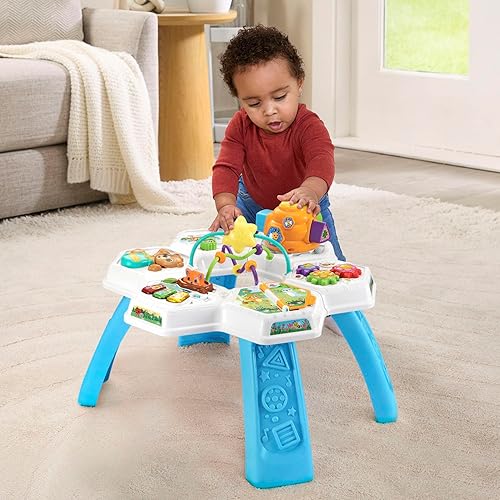 Explore seven developmental play zones on this buzzworthy activity table that transforms from floor play to standing play as they grow
