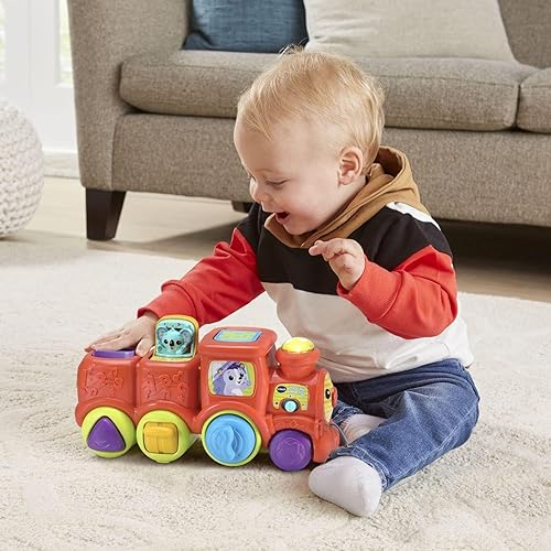 POP UP SURPRISES: Press, push, flip and twist the wheel switches on this train toy to make 3 cute peek-a-boo animals pop up, rewarding curiosity, encouraging play, developing fine motor skills and demonstrating cause and effect! Each pop will trigger the animals to introduce themselves with fun phrases and extra presses with trigger more interaction and learning excitement!