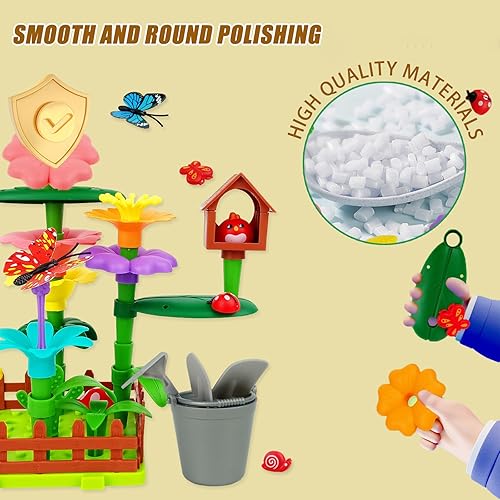Upgraded Garden Set: The set consists of a total of 124 pieces with rich colors, allowing your child to create a beautiful garden with this set. Cute birds, beautiful butterflies, and flowers that can be freely shaped can be naturally pieced together