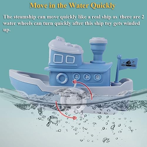 Moves in the Water Quickly: This boat bath toy is equipped with 2 water wheels on both sides, and the wheels will turn quickly after this toy gets winded up. Once the wheels turn, the boat moves.