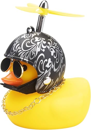 Unique Design - This yellow duck decoration is equipped with a funny helmet, eyeglasses, necklace and double-sided tape, a cool duck to relieve fatigue and add fun to our driving.